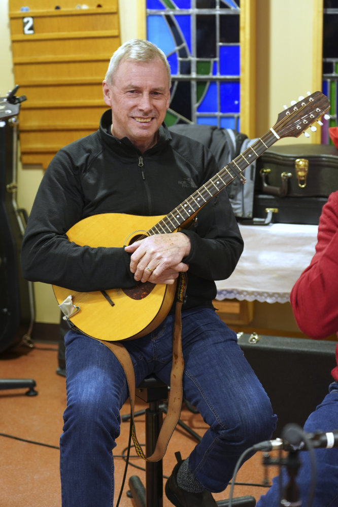 Rotarian Wayne Sheppard playing at the Long Term Care facility at the Rotary sponsored Christmas party for residents.