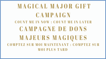 Dans le cadre de notre campagne magique de dons majeurs et planifiés, le district 7815 s'efforce de recueillir un million de dollars en dons promis ou en legs pour la Fondation Rotary. Avec la convention du Rotary International à Calgary en juin, c'est le moment idéal pour avoir un impact durable sur notre mission de changer des vies. Qu'il s'agisse de dons majeurs, de dons planifiés ou de la désignation d'une assurance-vie ou d'un actif de retraite, votre contribution permettra d'assurer l'avenir du travail vital du Rotary dans le monde entier.